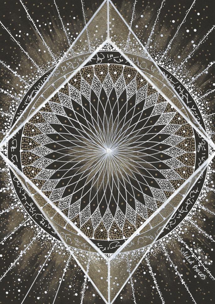 Soleil intérieur nous révèle la majesté et la beauté qui se manifestent dans une lumière centrale lorsqu’elle s’étend dans un tourbillon sans fin. Le Soleil intérieur incarne l’énergie qui nous dynamise, aussi forte que celle qui anime la galaxie, ses planètes et ses étoiles.